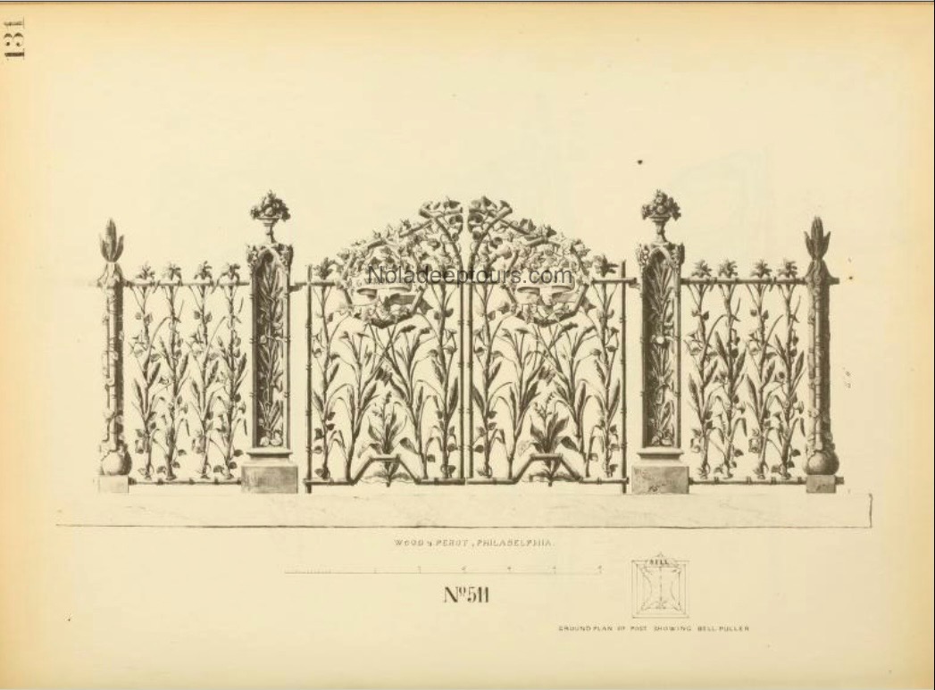Design No. 511. Robert Wood & Co.’s Portfolio of Original Designs of Ornamental Ironwork of Every Description. Philadelphia. © 1860s p. 131. https://archive.org/details/portfoliooforigi00robe/page/131/mode/1up